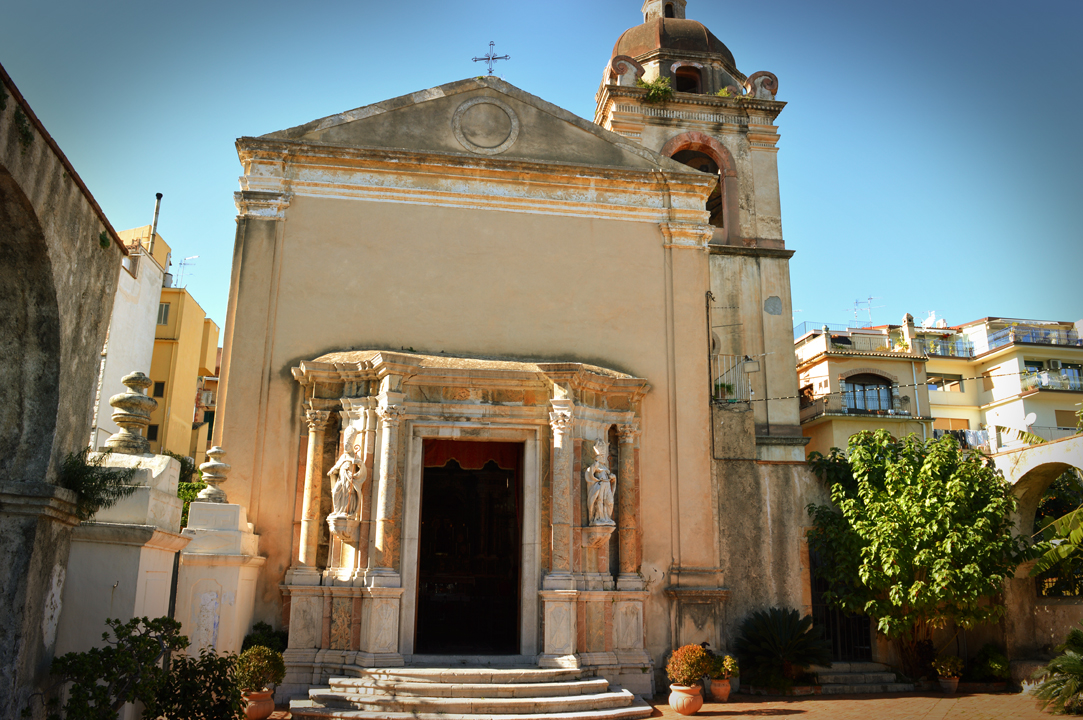 The Church of Saint Pancrazio is one of the most important churches in Taormina not only because it hosts the statue of St. Peter’s every year from June 29 to July 9, the feast of the patron saint of Taormina, but also because it is the oldest place of worship in the city. The structure of the church, in fact, includes within it the earlier building of the temple of Jupiter Serapis. From the Arabs on, the temple was used as a Christian church. The interior of the church of San Pancrazio is characterized by a single nave, with wonderful floors and four polychrome altars. Even the main altar is characterized by polychrome surfaces and four columns in Taormina marble that support the top four marble angels that hold in their hands the symbols of the Christian world and the patron of the episcopal office. San Pancrazio came from Antioch and was a disciple of St. Peter in spreading the Gospel. Came to Taormina in 40 A.D. where he converted to Christianity several important personalities of the time, he was tortured and finally killed at the age of ninety. His body was at first in the church before being transferred to Rome in the cemetery of Calepodio year 902 A.D.