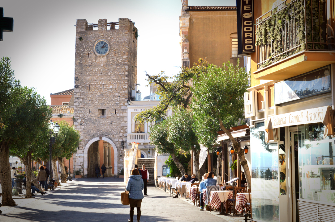 Walking along the famous Corso Umberto of Taormina you arrive in Piazza IX Aprile, dominated by the beautiful Clock Tower. It built in the twelfth century on the remains of previous buildings dating back to the greek-Roman period, the tower, along with the walls, whose remains are still visible, bordered what once was the medieval village. The Clock Tower was destroyed several times and always rebuilt to arrive in all its beauty to this day. In the upper section has a clock, placed on the occasion of the reconstruction of 1679, the battlements and is characterized by a stone arch. Inside the tower are also placed the bells that are made to play on two occasions: the appointment of the mayor and at the feast of the patron San Pancrazio, celebrated on July 9.